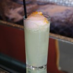 Kappa Pisco, lemon, Corona reduction, egg white, topped off with Corona and 45° written in bitters